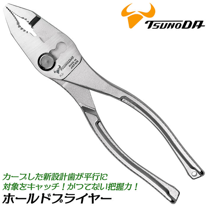 TTC ホールドプライヤー ローレットハンドル 200mm 3段階調整 カーブ配列歯モデル コンビネーションプライヤー 平行キャッチ 切断機能付 日本製 PLC-200U ツノダ