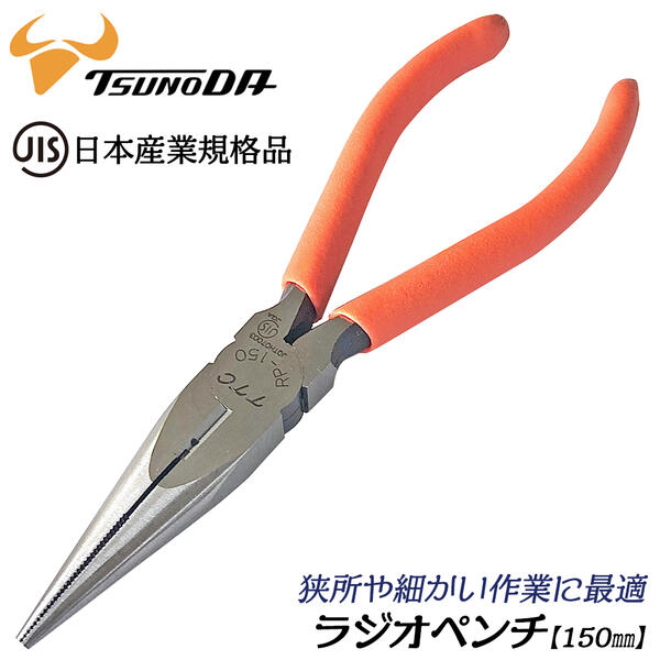 TTC JIS ラジオペンチ 150mm φ1.2mmまで切断可能 穴付き 溝付 強力刃 ビニールグリップ つかむ 切る まわす 曲げる 切る 剥く 切断 大工 ホビー RP-150 ツノダ
