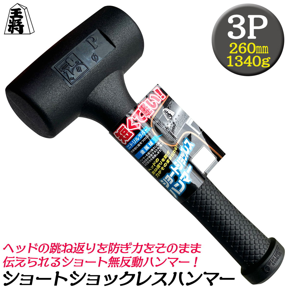 王将 ショックレスハンマー ライトショート 3ポンド 260mm 無反動ハンマ― 衝撃吸収 静音設計 3P 一体成型 杭打ち 防災 アウトドア 日本製 燕三条 須佐製作所