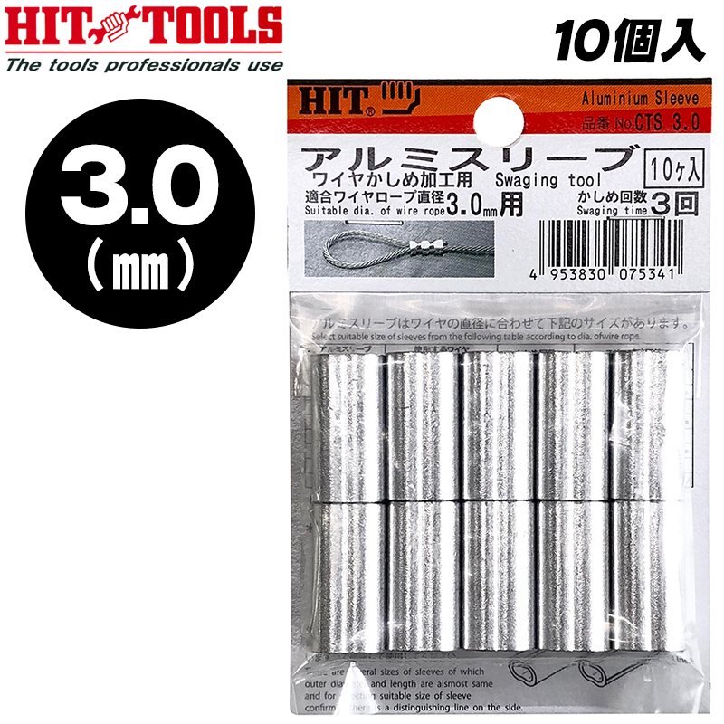HIT アルミスリーブ 3.0mm スリーブ クランプ管 圧着 カシメ 荷役 ワイヤーロープ アルミニウム製 ロック止 ワイヤー スエージャー CTS-3.0 ヒット商亊 東邦工機