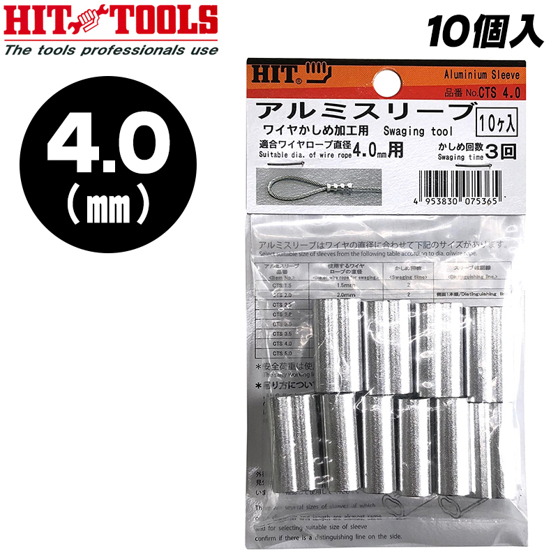 HIT アルミスリーブ 4.0mm スリーブ クランプ管 圧着 カシメ 荷役 ワイヤーロープ アルミニウム製 ロック止 ワイヤー スエージャー CTS-4.0 ヒット商亊 東邦工機