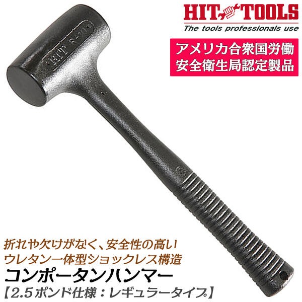 HIT 特殊ウレタン製一体構造コンポータンハンマー 0.2ポンド スリムタイプ 245mm 低音設計 ウレタンショックレス 柄が抜けない 衝撃吸収 S-02 ヒット商事
