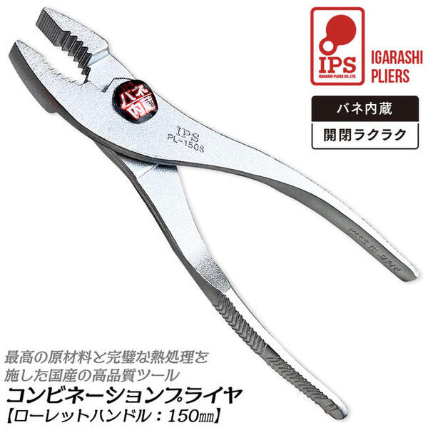 IPS PLIERS コンビネーションプライヤ 150mm バネ付き ビニールグリップ付 掴む 挟む 回す 切る 滑りにくい DIY ホビー 自動車 自転車 PL-150S 五十嵐プライヤー