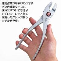 ■独自のバネ内蔵機構を搭載して作業効率大幅向上!油仕事でもしっかりと手にすいつくグリップ無しのローレットハンドル仕様のコンビネーションプライヤー!
