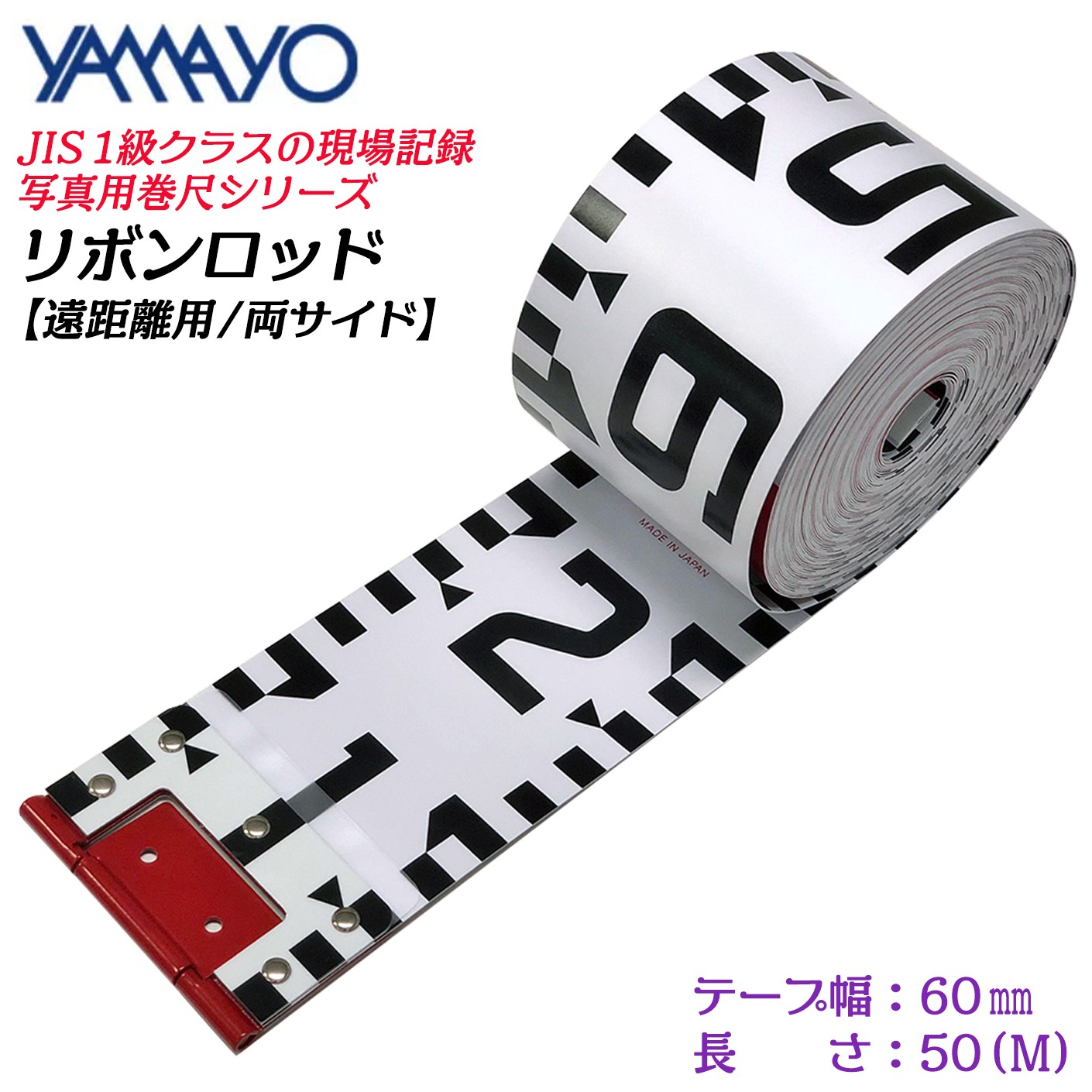 ヤマヨ測定器 リボンロッド 両サイド 60mm幅 1M JIS1級 遠近両用 ガラス繊維テープ 工事 災害 事故 スポーツ 記録作成 施工 管理 測量 管理 60E-2 R6B1 YAMAYO