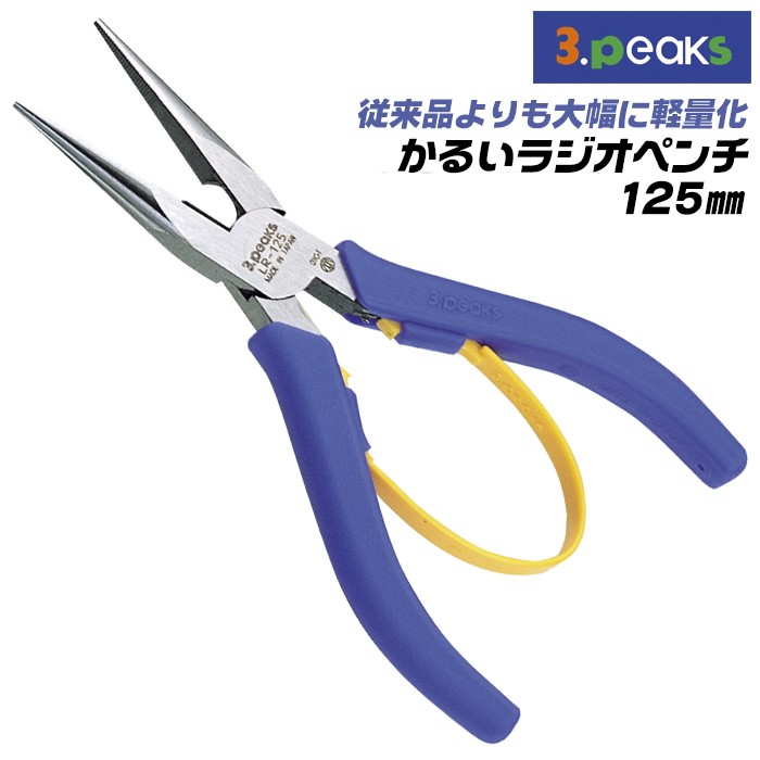 スリーピークス技研 かるいラジオいペンチ 125mm バネ付 エラストマー樹脂グリップ 疲れにくい 切断 挟む ホビー 精密 電子機器 軽い ラジペン LR-125S 3peaks