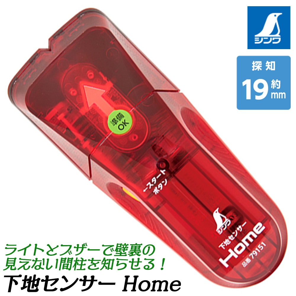 シンワ測定 下地センサー Home 探知約19mm対応 壁裏 間柱 壁を傷つけずにチェック ライトとブザーで御知らせ 電池1本付き 石膏ボード ベニヤ 下地チェック 79151