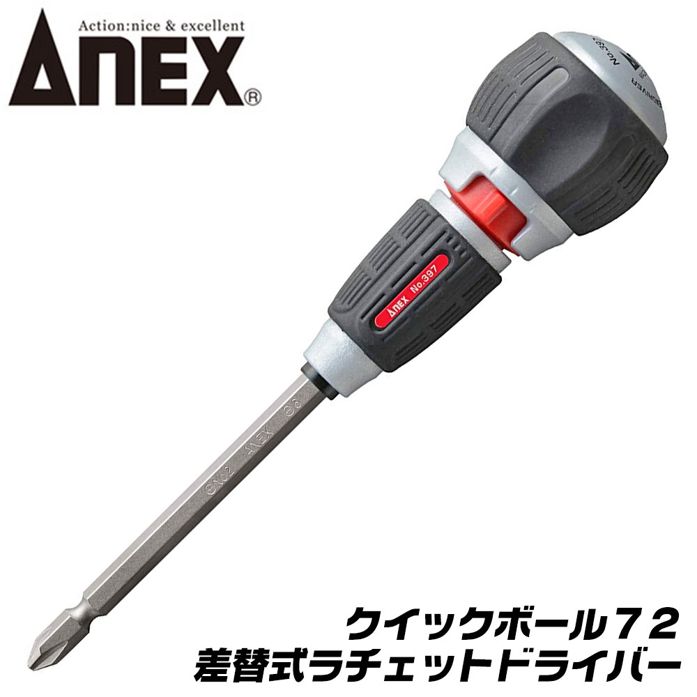 ANEX クイックボール72 ラチェットドライバー ギヤ数72 早回し 本締め 電動用ビット使用可能 差替え式 固定 切替え式 マグネット付 No.397D 兼古製作所