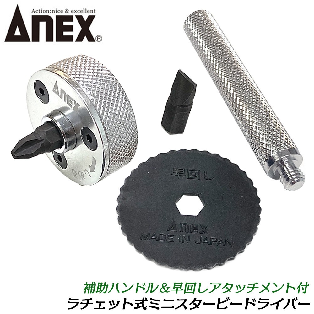 ANEXTOOL ラチェット式ミニスタービードライバー +2 -6 全長31mm ギア40枚 閉所作業 差し替え 便利な早回し 補助ハンドル ラチェット機構 #316 兼古製作所