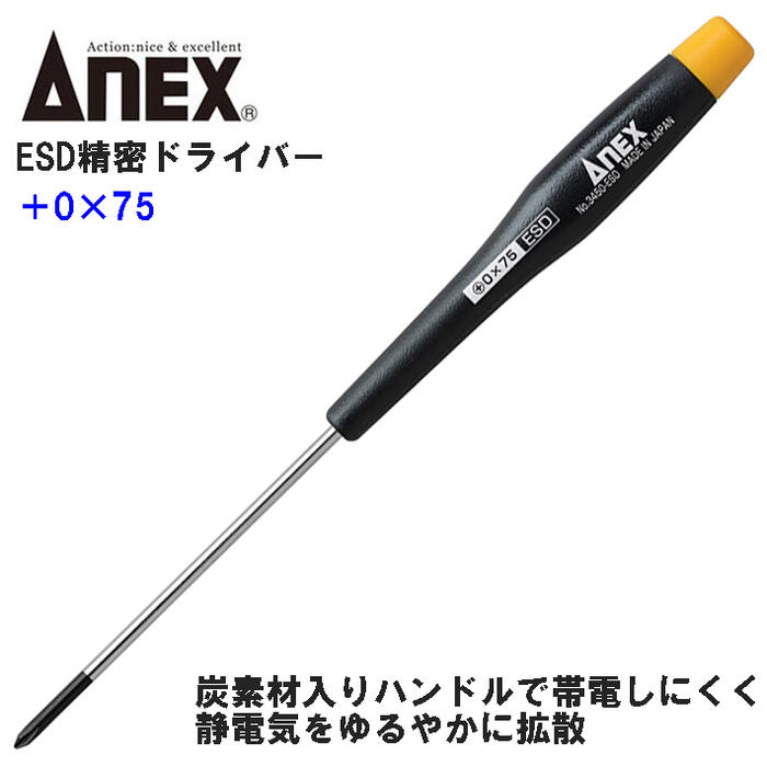 ANEXTOOL ESD精密ドライバー +0X75 静電気放電対策ドライバー 除電 電子機器 精密機器 IC 半導体 基盤 回路 プラスドライバー #3450-ESD 兼古製作所