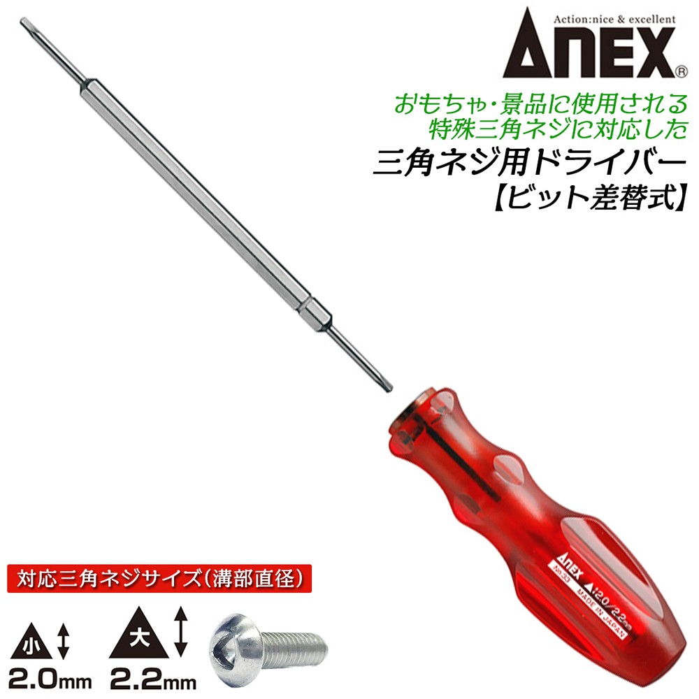 ANEXTOOL 三角形ネジ用 差替え式ドライバー △2.0 △2.2 三角ネジ用 おもちゃ 修理 分解 いじり止め 特殊ネジ 細軸先端 プラレール トミカ No.33 兼古製作所