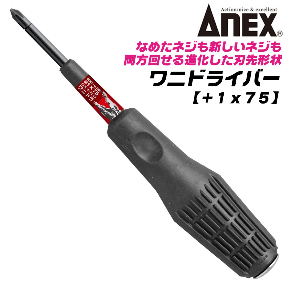 ANEX 進化型ビスブレーカー ワニドラ +1 75mm 打撃対応 クロコダイルハンドル 座金付 レスキューツール 打撃ドライバー #3980 +1x75 日本製 兼古製作所