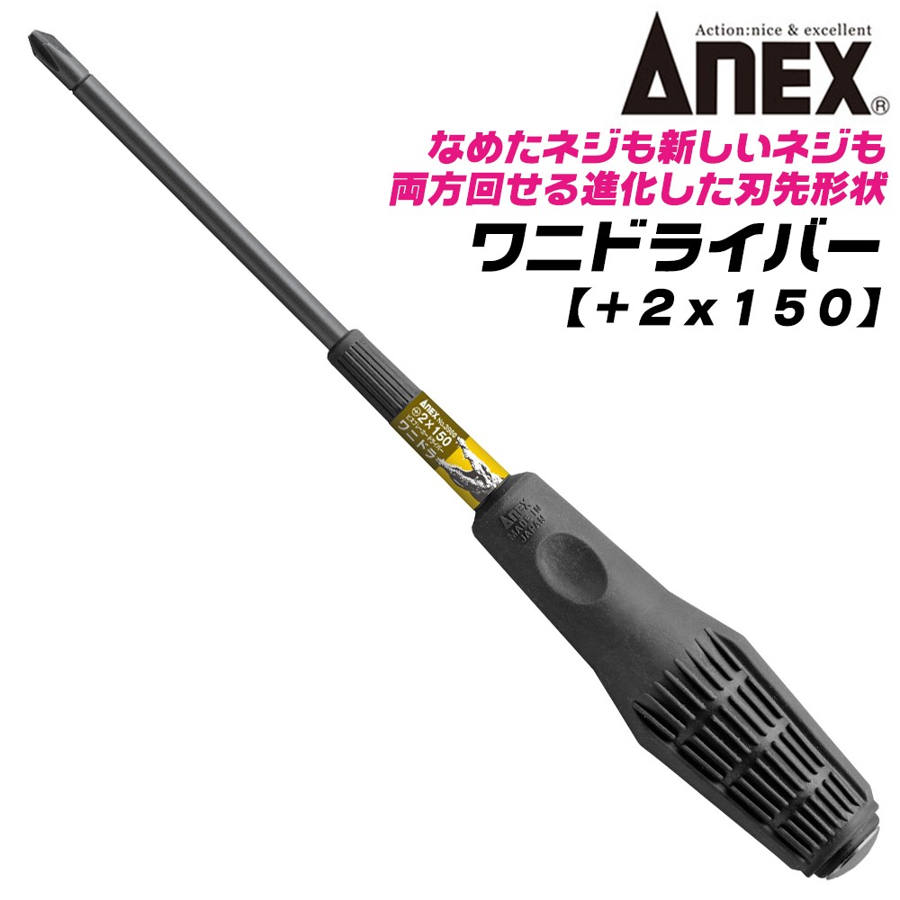ANEX 進化型ビスブレーカー ワニドラ +2 150mm 打撃対応 クロコダイルハンドル 座金付 レスキューツール 打撃ドライバー #3980 +2x150 日本製 兼古製作所