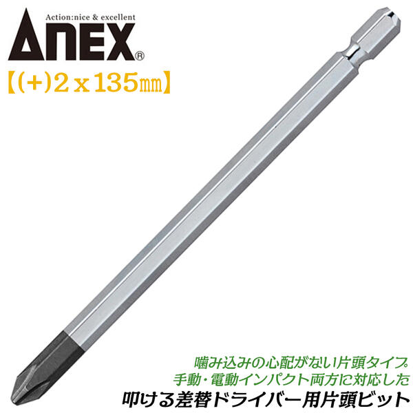 ANEXTOOL 叩ける差替ドライバー用片頭ビット +2X135mm 差し替えビット 手動ドライバー用 インパクトドライバー用 マイナスドライバー AK-22C 兼古製作所