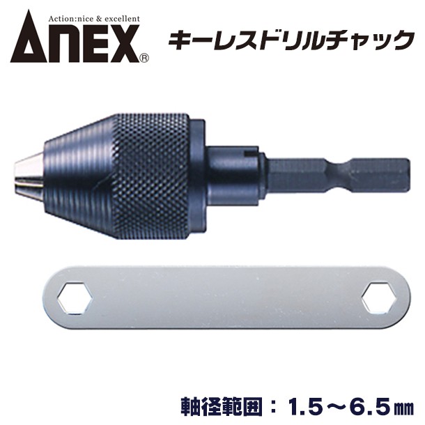 ANEXTOOL キーレスドリルチャック 軸径範囲 1.5〜6.5mm キーレスタイプ ドリルチャック 本締め用スパナ付き 丸軸ドリル 6.35mm角 AKL-160 兼古製作所