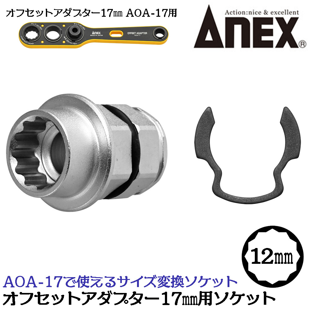 ANEX オフセットアダプター17用変換ソケット [12mm] インパクトドライバー 40V対応 12角 換装ソケット AOA-1712 アネックスツール