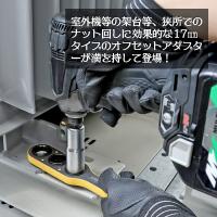 ■狭所作業での締結に特化したオフセットアダプターに17mmモデルで使えるサイズ変換用差替えソケット!本体はヘッド部が更に薄くなったことで従来品ではぶつかって回せなかった箇所や、設備工事における架台・隙間でのボルト・ナットの締結が可能になった新サイズタイプ!