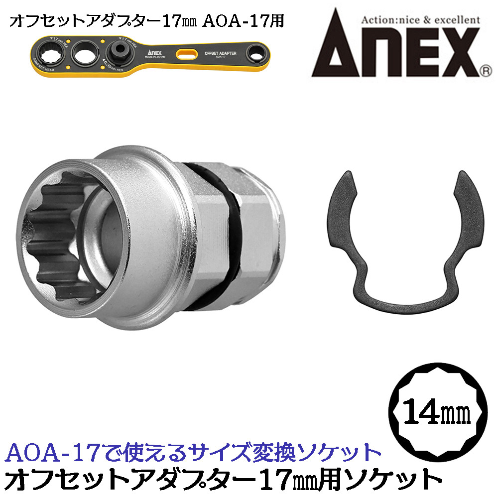 ANEX オフセットアダプター17用変換ソケット [14mm] インパクトドライバー 40V対応 12角 換装ソケット AOA-1714 アネックスツール