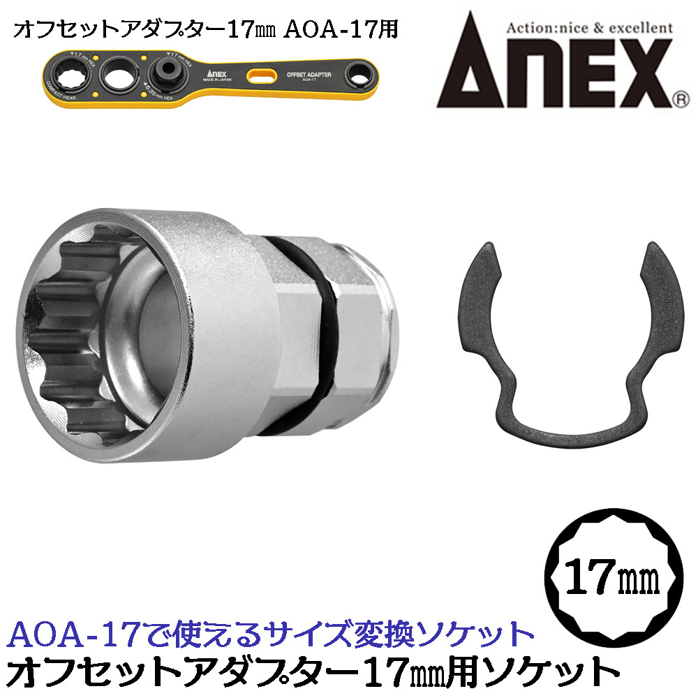 ANEX オフセットアダプター17用変換ソケット [17mm] インパクトドライバー 40V対応 12角 換装ソケット AOA-1717 アネックスツール