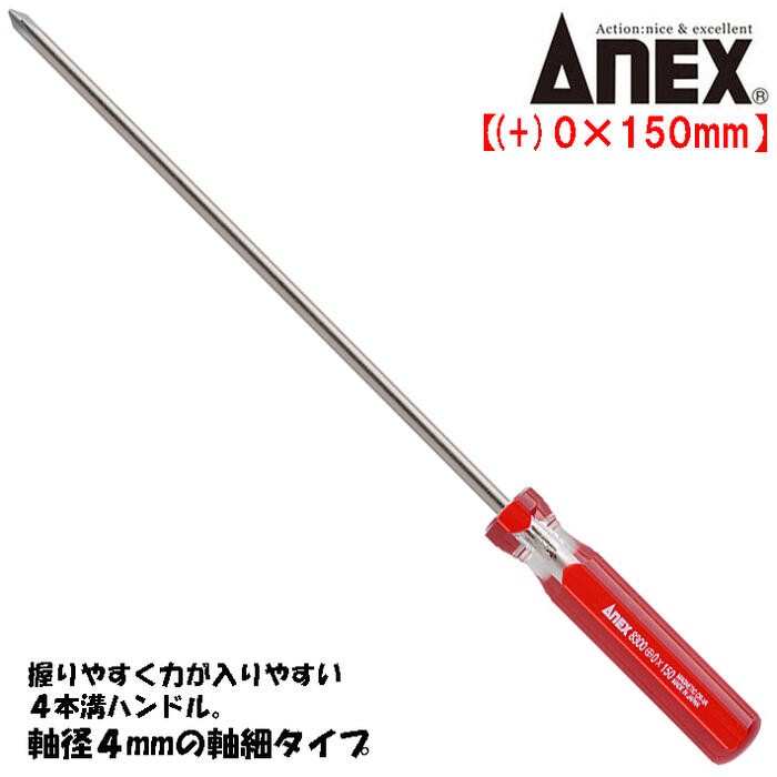 ANEXTOOL フォーラインドライバー +0X150mm 細軸タイプ 握りやすい 力が入りやすい 回す 締める 緩める プラスドライバー #8300+0X150 兼古製作所