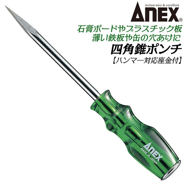 ANEXTOOL 四角推ポンチ 座金付き 石膏ボード プラスチック板 木ネジ 釘 金属板 薄鉄板 缶 波板 下穴あけ ケガキ作業 叩ける プラスチック柄 #9102 兼古製作所