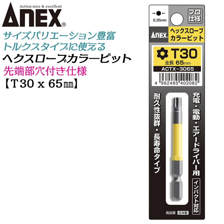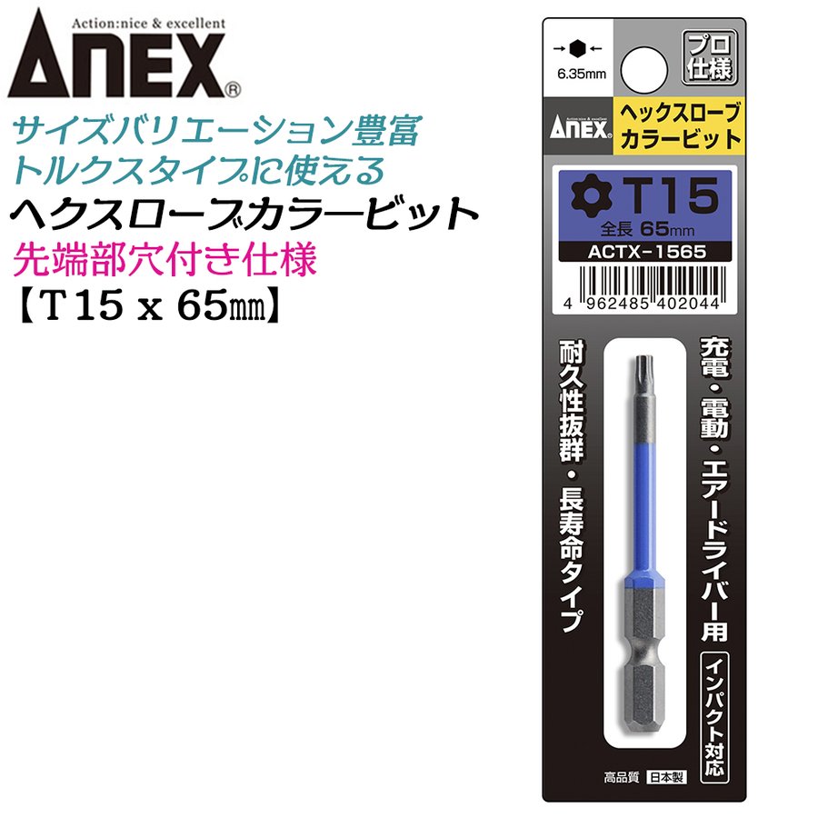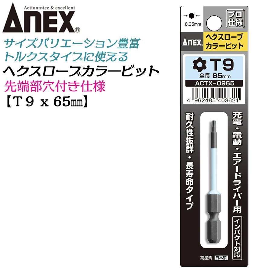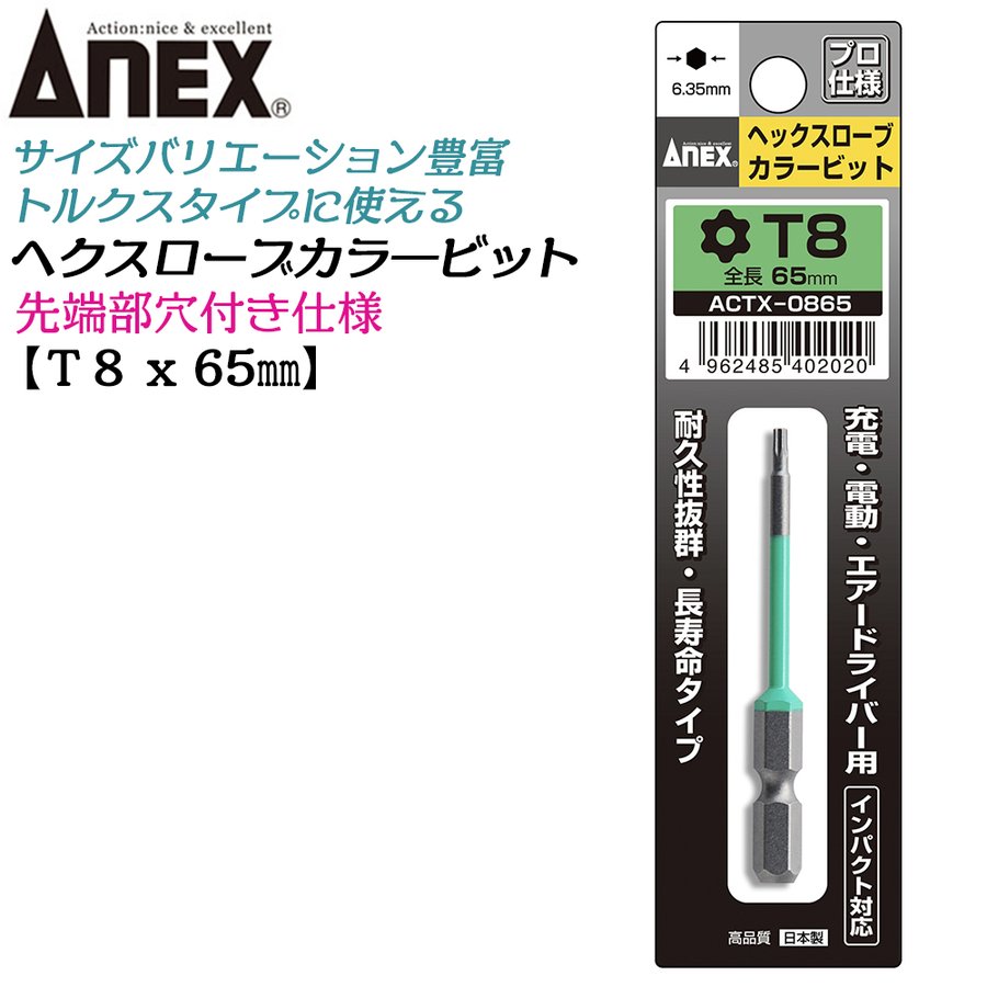 ANEX カラービット ヘクスローブ 5本組 T4 T5 T6 T8 T10 耐久性抜群 長寿命タイプ 家具 機械 設備 組立 DIY トルクス 日本製 ACTX5-65L2 兼古製作所