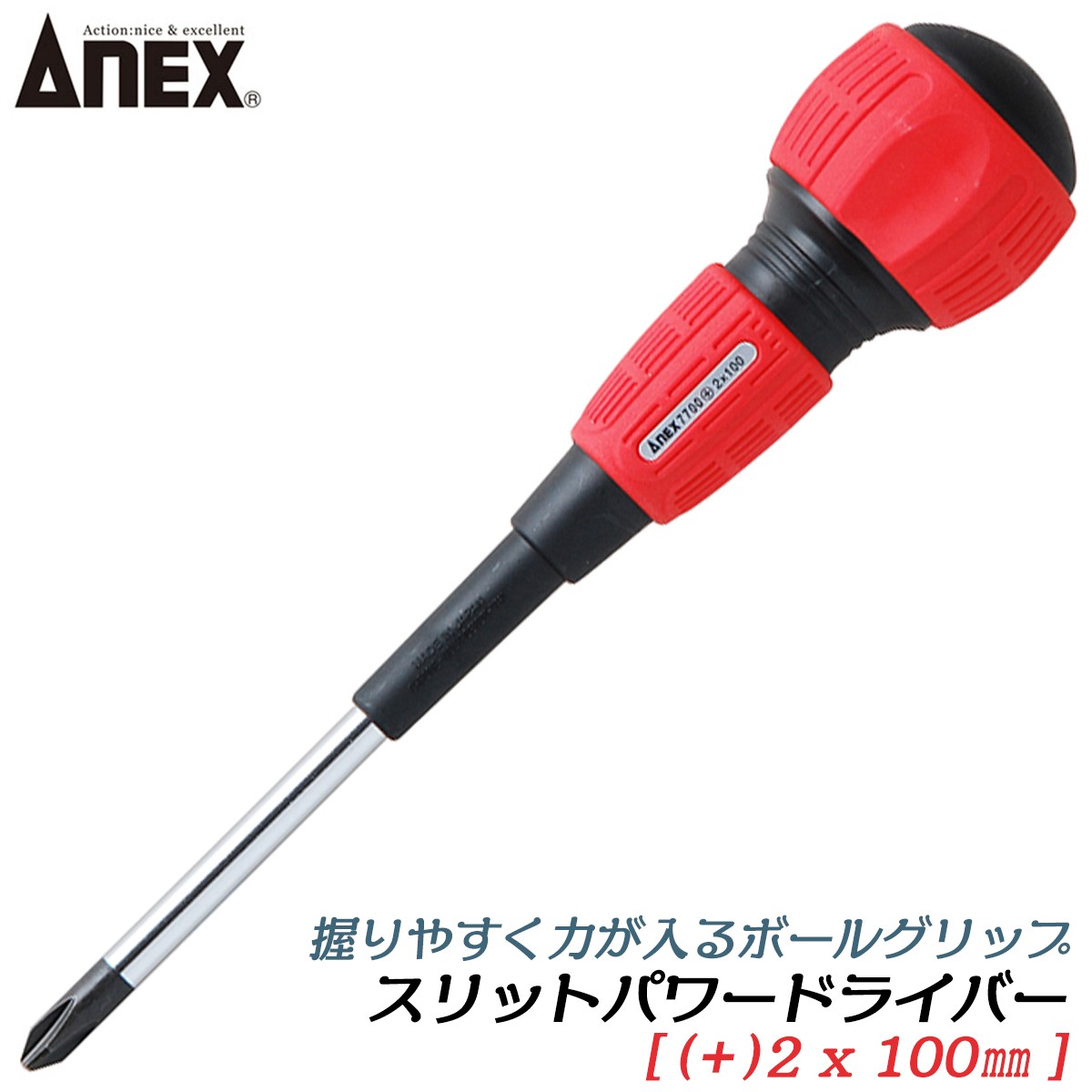 ANEXTOOL スリットパワードライバー +2x100mm 電工ボールグリップ レギュラータイプ プラスドライバー マグネット付 電工ドライバー日本製 #7700 兼古製作