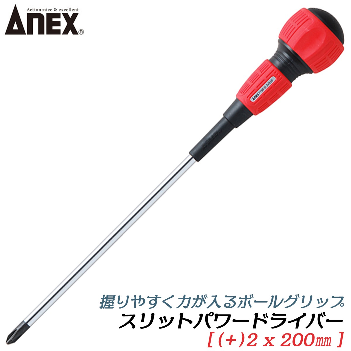 ANEXTOOL スリットパワードライバー +2x200mm 電工ボールグリップ レギュラータイプ プラスドライバー マグネット付 電工ドライバー日本製 #7700 兼古製作