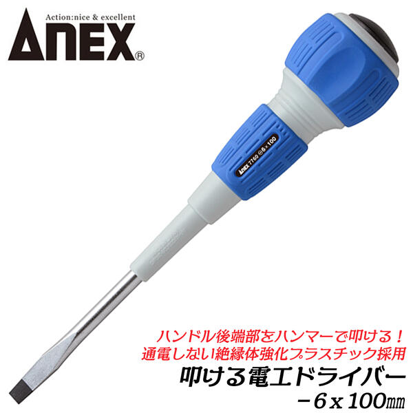 ANEXTOOL 叩ける電工ドライバー -6x100 ハンマーで叩ける 叩きやすい 絶縁体座金 電設 電気工事 通信設備工事 配線 配電盤 プラスチック柄 #7760 兼古製作所
