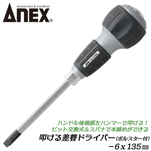 ANEXTOOL 叩ける差替ドライバー ボルスター付 -6x135 ハンマーで叩ける座金 ビット差替タイプ 6.35mm六角軸 マイナスドライバー #7755-M6 兼古製作所