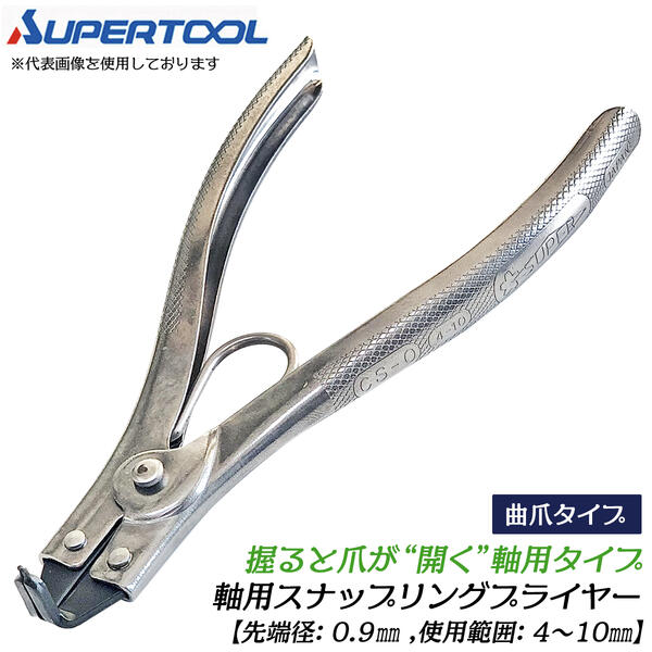 スーパーツール 軸用スナップリングプライヤー 曲爪 4~10mm対応 先端サイズ 0.9mm ローレットハンドル 止め輪プライヤー Cリング Eリング CS0B SUPERTOOL