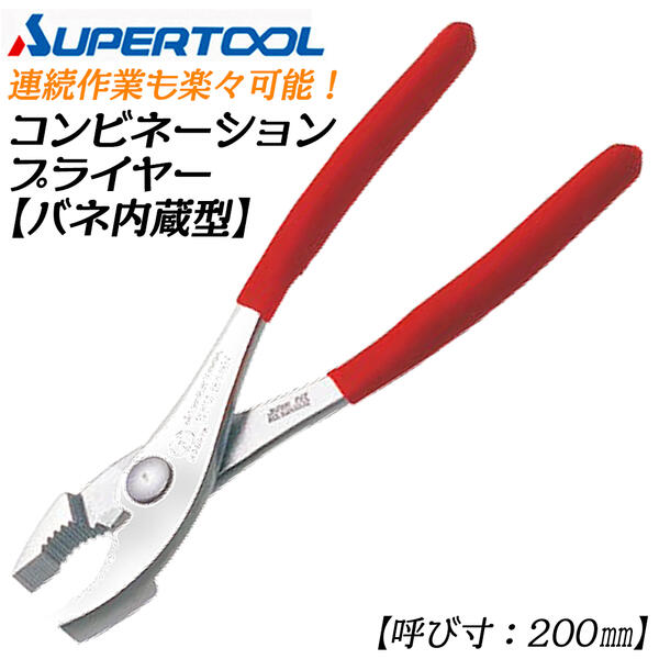 スーパーツール コンビネーションプライヤ 200mm バネ付 ビニールグリップ付 2段階調節 スタンダードタイプ 掴む 挟む 曲げる 回す JIS規格 CPS200H SUPERTOOL