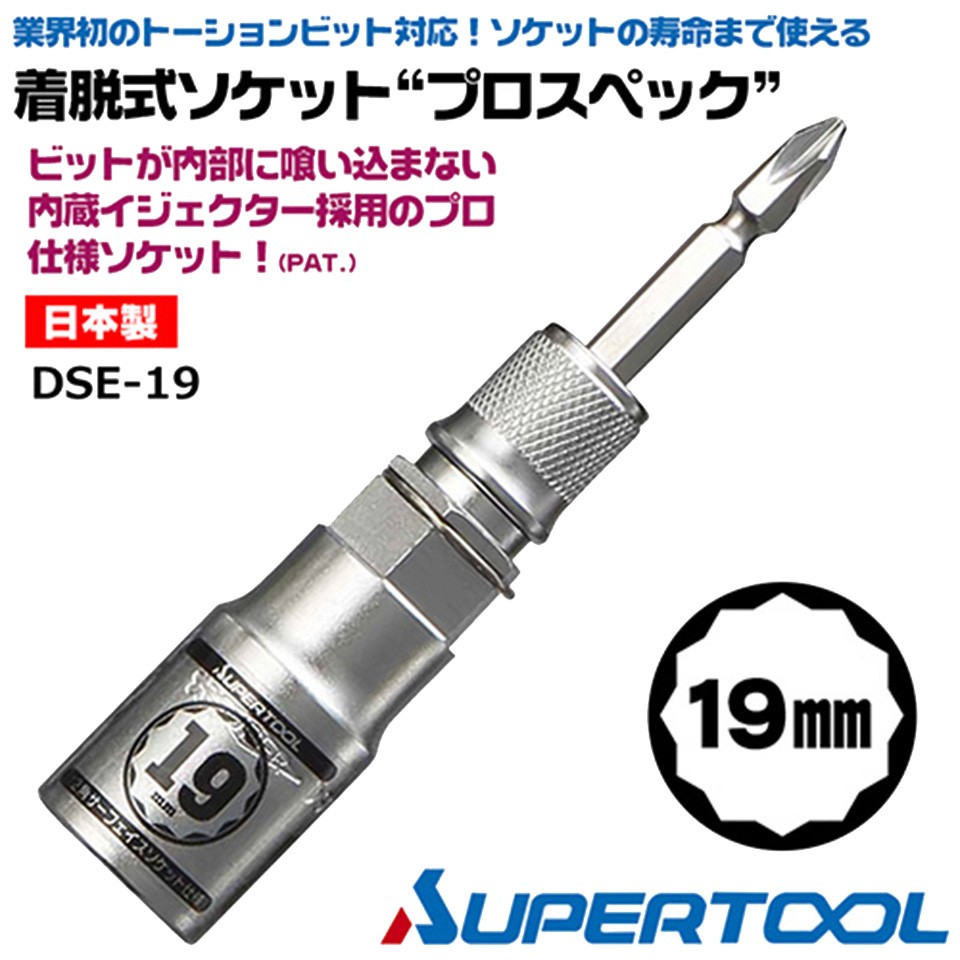 スーパーツール 着脱式ソケット プロスペック 19mm ビットが喰い込まない 18V対応 トーションビット対応 インパクトドライバー 差替式 6.35mm DSE-19 SUPERTOOL
