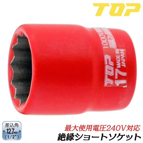 トップ工業 絶縁ショートソケットレンチ 六角対辺 17mm 差込角12.7mm 1/2 6角サーフェイス 耐電圧240V 通信 設備 電設 電力工事 電気工事 S-417ZR TOP