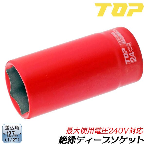 トップ工業 絶縁ショートソケットレンチ 六角対辺 19mm 差込角12.7mm 1/2 6角サーフェイス 耐電圧240V 通信 設備 電設 電力工事 電気工事 S-419ZR TOP