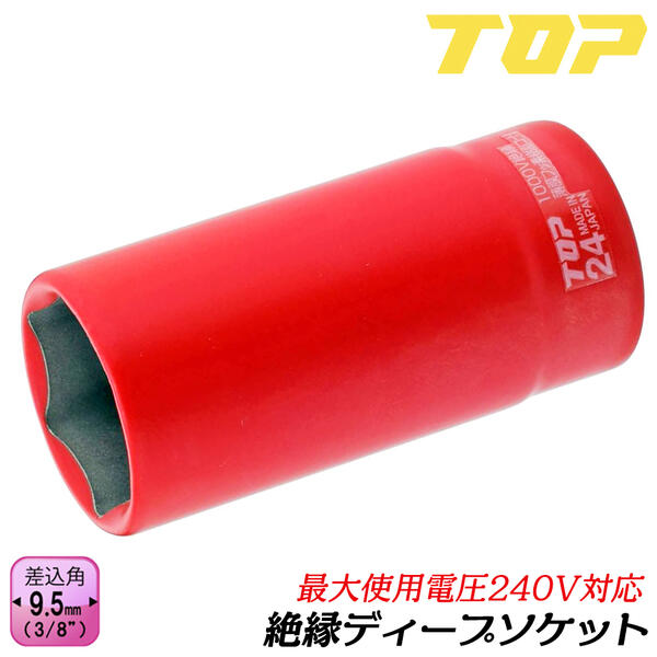 トップ工業 絶縁ディープソケットレンチ 六角対辺 19mm 差込角9.5mm 3/8 6角サーフェイス 耐電圧240V 通信 設備 電設 電力工事 電気工事 DS-319ZR TOP