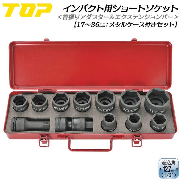 トップ工業 インパクトレンチ用ソケットセット 17mm~36mm 差込角 12.7mm 1/2 メタルケース付 首振りアダプター エクステンションバー PT-1736XUS TOP