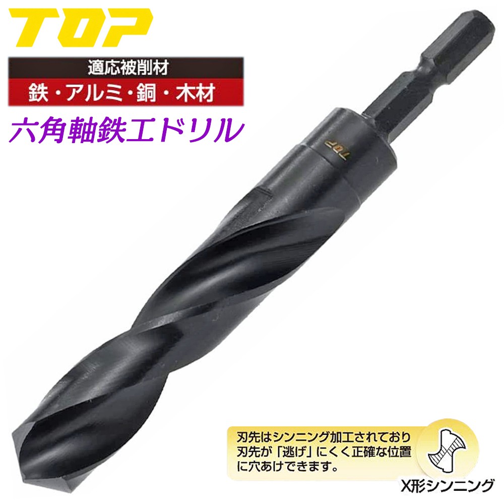 TOP 鉄工ドリル 12.0mm 電動ドリル用 六角シャンク X型シンニング加工 下穴あけ 貫通 刃先がぶれない 滑りにくい 先端工具 六角軸 18V対応 ETD-12.0 トップ工業