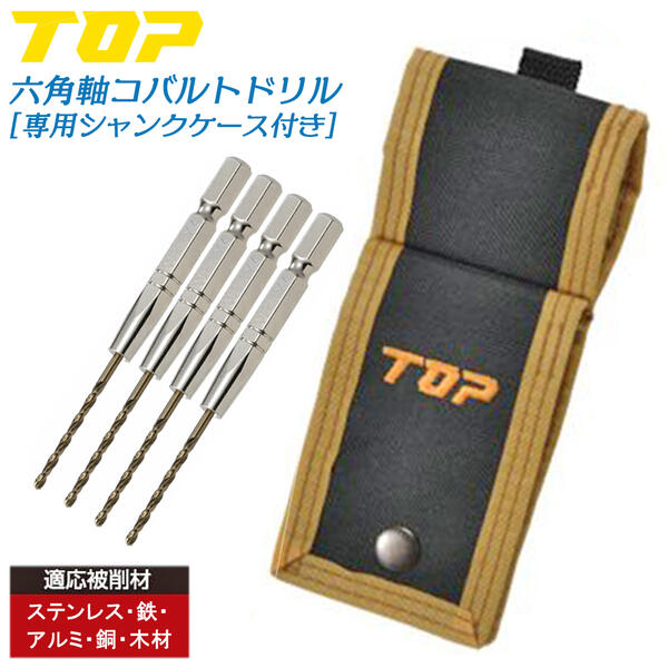 TOP コバルトドリル 4本セット 収納ドリルケース付 3~5mm 電動ドリル用 六角シャンク 下穴あけ ワンタッチ装着 六角軸 18V対応 EOD-3050DKS トップ工業