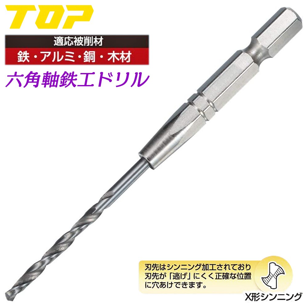 TOP 鉄工ドリル 1.5mm~3.0mm 電動ドリル用 六角シャンク X型シンニング加工 下穴あけ 貫通 刃先がぶれない 滑りにくい 先端工具 六角軸 18V対応 ETD トップ工業