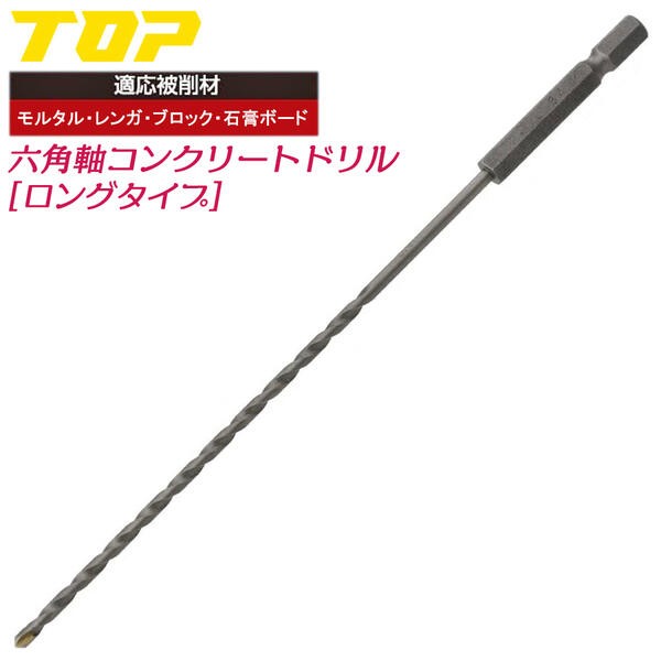 TOP コンクリートロングドリル 4.0mm 電動ドリル用 六角シャンク 回転専用 穴あけ 下穴あけ 貫通 ワンタッチ装着 先端工具 六角軸 ECD-4.0L トップ工業