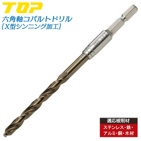 TOP コバルトドリル 5.5mm 電動ドリル用 六角シャンク X型シンニング加工 下穴あけ ワンタッチ装着 六角軸 コバルトハイス鋼 18V対応 EOD-5.5 トップ工業