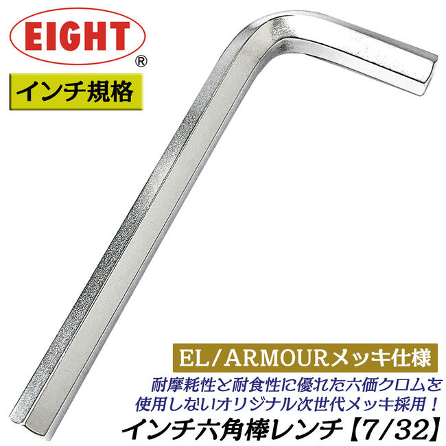 エイト インチ規格 六角棒レンチ 7/32 プレミアム硬質メッキ仕上 EL/ARMOUR仕様 国産最高品質 北米規格 inch 袋ナット 六角レンチ 日本製 R-7/32 EIGHT