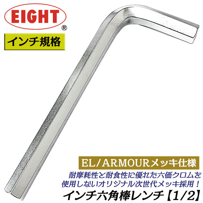 エイト インチ規格 六角棒レンチ 1/2 プレミアム硬質メッキ仕上 EL/ARMOUR仕様 国産最高品質 北米規格 inch 袋ナット 六角レンチ 日本製 R-1/2 EIGHT
