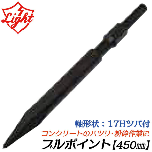ライト精機 ブルポイント 450mm 六角17mm軸ハンマー用 ツバ有り コンクリート ハツリ 粉砕 破壊 先端パーツ 打撃 六角シャンクハンマードリル用 LIGHT