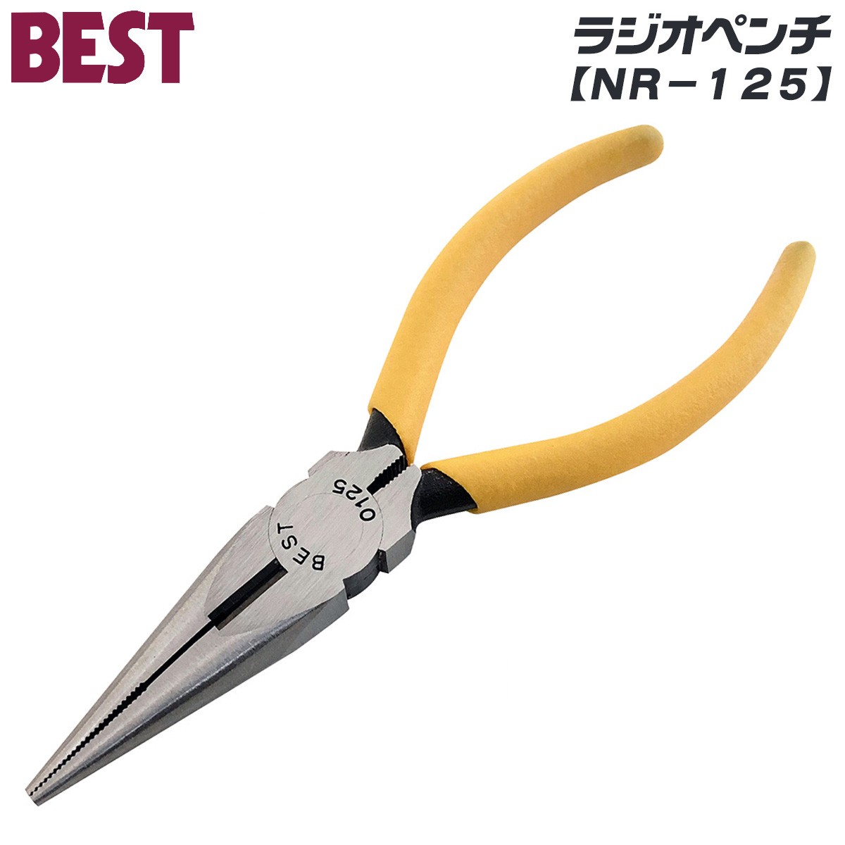 ベストツール 国産 ラジオペンチ 125mm ビニールグリップ付 先細 精密 加工 クラフト 電気 配線 手芸 ホビー 切断 挟む はさむ 切る ギザ付 日本製 NR-125