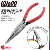 WELL 万能ラジオペンチ 150mm ビニールグリップ付 先長形状 精密作業 挟所作業 掴む 曲げる 切る 挟む ねじる 圧着 割線 皮膜剥き 日本製 WR-150M ベストツール