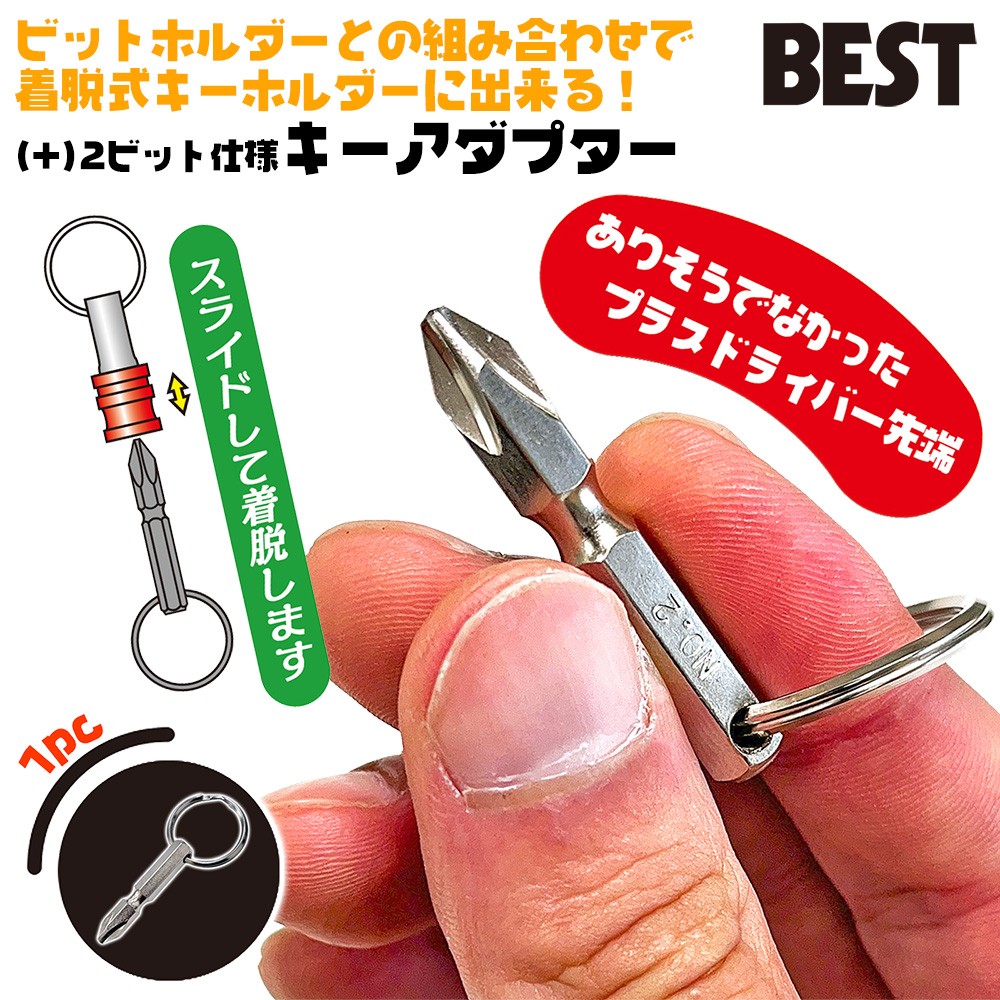 ベストツール No.2プラスビット仕様 キーアダプター 1pc ビットホルダー用 六角軸 ドライバー先端 着脱式キーホルダー用パーツ Cr-V鋼 アタッチメント BTH-1KA