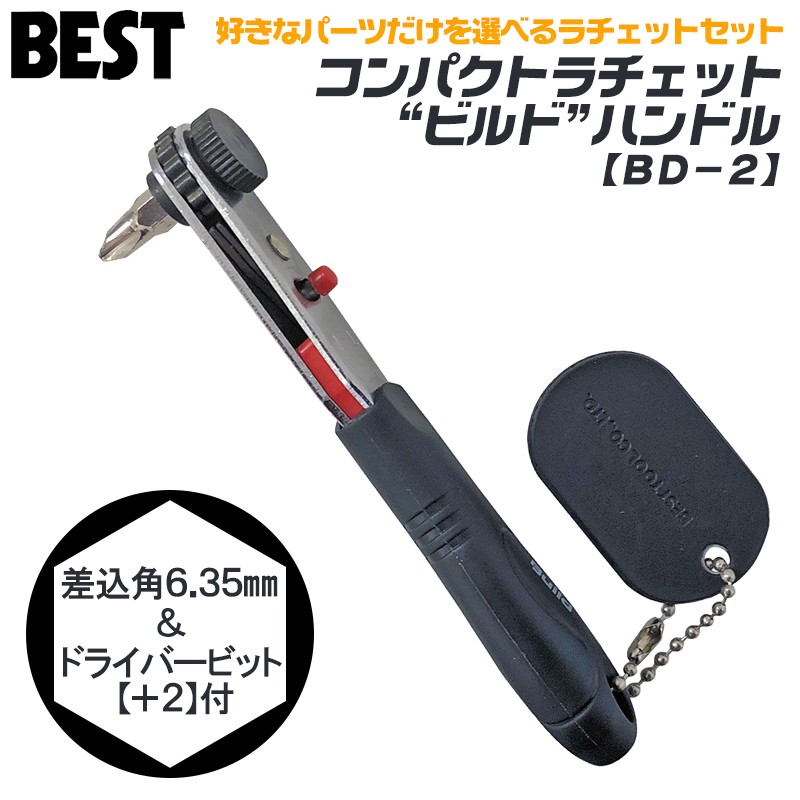 ベストツール ビルド コンパクトラチェットレンチ ハンドル +2ドライバービット付 狭所作業 工具 ビット差替え式 ラチェット機構 連続作業 組立て DIY BD-2