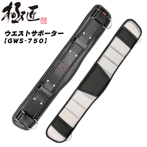 極匠 ウエストサポーター 750mm 抜群の通気性 パンチングレザー スライド式 着脱式 ベルトループ Dカン付 胴当てベルト サポートベルト GWS-750 ベストツール